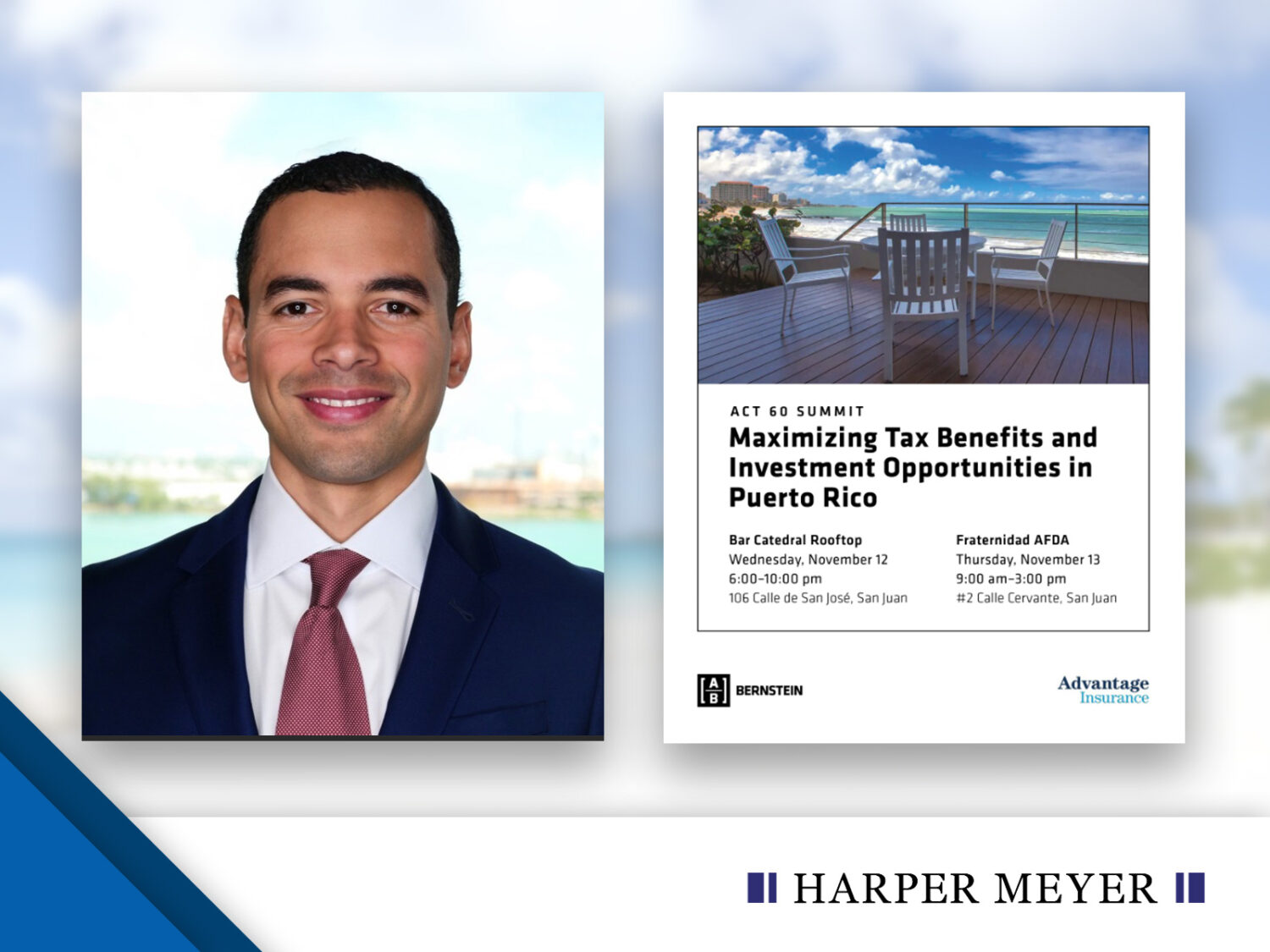 Harper Meyer is pleased to share that Attorney Gustavo E. Negrón Mattei participated as a panelist at the Maximizing Tax Benefits and Investment Opportunities in Puerto Rico summit organized by STEP Puerto Rico that took place November 12 and November 13 in San Juan, Puerto Rico. Sponsored by Bernstein Private Wealth Management and Advantage Life Insurance, the summit brought together leading voices in international tax, wealth structuring, and cross-border planning for a thoughtful, forward-looking exchange of ideas.